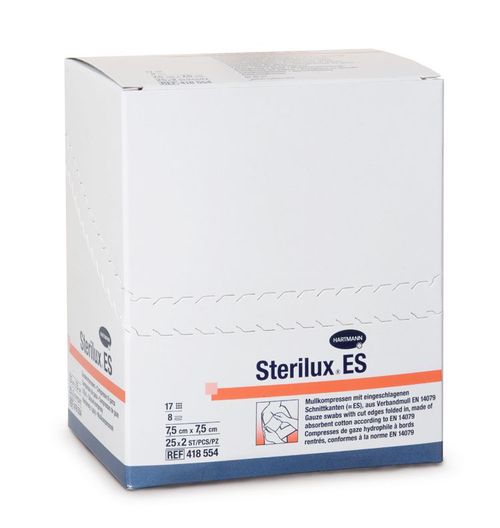 Sterilux Gáza kompresní sterilní 17 vláken 8 vrstev 7,5 x 7,5 cm 25x2 ks