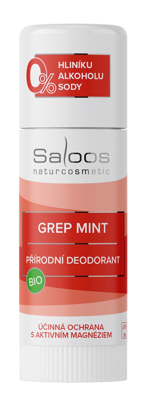 Saloos BIO Přírodní deodorant Grep mint absorbuje vlhkost a neutralizuje nepříjemný zápach způsobený pocením. Zanechává podpaží suché a svěží.