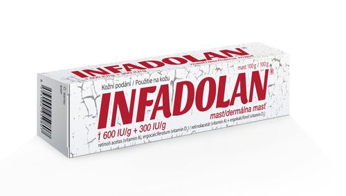 Mast se používá k léčbě suché kůže a urychluje hojení drobných neinfikovaných ran a oděrek. Lze použít na popraskanou kůži, neinfikované drobné rány a trhliny v kožních rýhách. Promašťuje suchou pokožku u chronických ekzémů. Infadolan je vhodný k ošetření popálenin I. stupně či kůže pacientů s atopickou dermatitidou. Pomáhá předcházet opruzení u dětí a dospělých. Promašťuje a urychluje obnovu pokožky. Mast Infadolan je určena pro dospělé, dospívající i děti od novorozeneckého věku. Složení: V jednom gramu masti: retinoli acetas (vitamin A) 1 600 m.j. (1,0665 mg) a ergocalciferolum (vitamin D2) 300 m.j. (0,0075mg). Pomocné látky (masťový základ) jsou bílý vosk, tuk z ovčí vlny (lanolin), bílá vazelína. Dávkování: Dospělým i dětem se Infadolan nanáší v tenké vrstvě 1-3krát denně na postižená místa, či na suchou kůži. Délka léčby by bez porady s lékařem neměla přesáhnout 2 týdny. Upozornění: Přípravek obsahuje tuk z ovčí vlny. Může způsobit místní kožní reakce (např. kontaktní dermatitidu). Pokud jste těhotná nebo kojíte, poraďte se se svým lékařem nebo lékárníkem dříve, než začnete tento přípravek používat. Infadolan lze používat v těhotenství a v období kojení. LÉČIVÝ PŘÍPRAVEK, ČTĚTE POZORNĚ PŘÍBALOVÝ LETÁK.