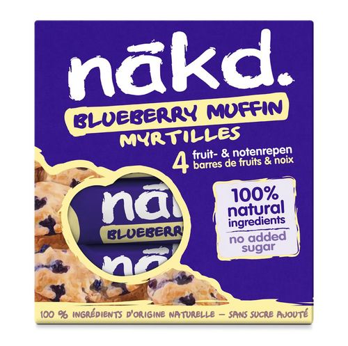 Než sáhnete po sladkostech zkuste tyčinku ovoce a ořechů v raw kvalitě. Skvělá šťavnatá svačinka Nakd Blueberry Muffin je pouze z přírodních surovin bez přidaného cukru.