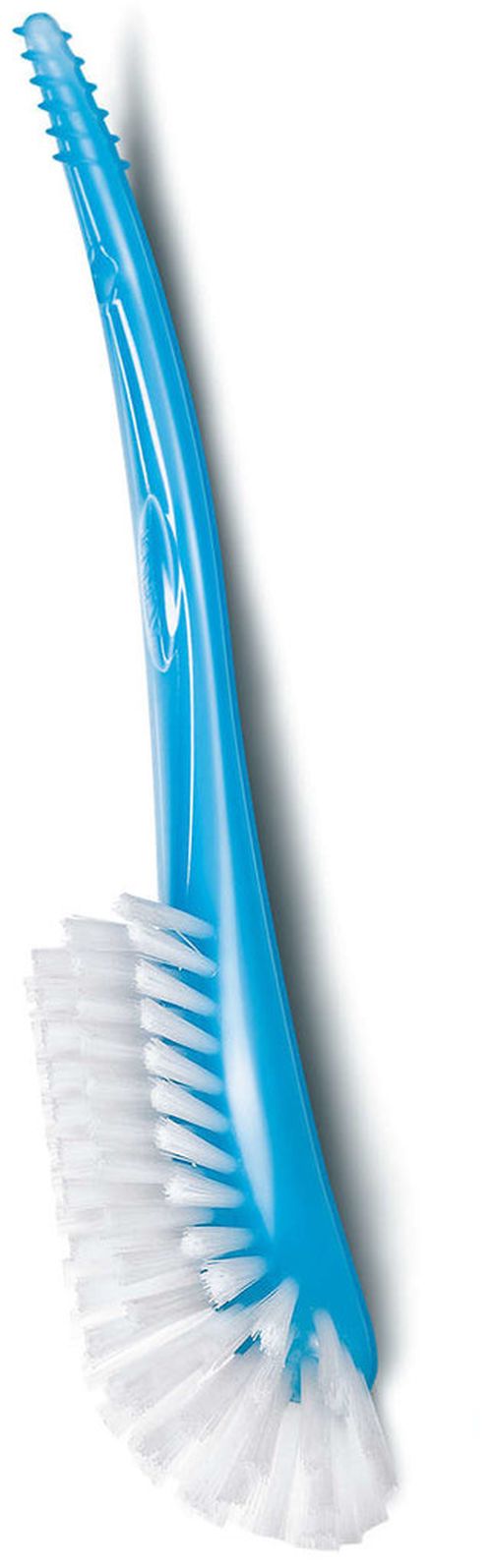 Speciálně zakřivený kartáč a tvarovaná rukojeť umožňují dokonalé vyčištění všech záhybů kojeneckých lahví, dudlíků i hubiček. Na rukojeti je speciálně vytvarovaný konec na čistění špatně dostupných míst např. u hubiček.
