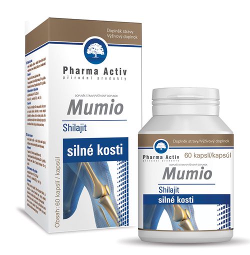 Lidově je nazýváno též slzy hor, slzy skal či horská pryskyřice apod. Má neobyčejně dobrý vliv na kosterní ústrojí a působí povzbudivě na celý organizmus. Ocení ho především osoby po úrazech, starší osoby, stejně jako osoby unavené, oslabené a vyčerpané. Složení 1 kapsle: mumio (shilajit) v prášku, želatina (obal kapsle), maltodextrin, protispékavá látka: hořečnaté soli mastných kyselin. Dávkování: Dospělí: 1 kapsle 1 až 2 krát denně, zapít sklenicí vody. Doporučená denní dávka obsahuje: 1 kapsle 2 kapsle Výtažek Mumio (shilajit) 200 mg 400 mg Upozornění: Produkt je určen dospělým. Nevhodné pro osoby alergické (přecitlivělé) na některou z látek ve složení produktu. Není určeno dětem, těhotným a kojícím ženám. Nepřekračujte doporučené denní dávkování. Není určeno jako náhrada pestré stravy. Uchovávejte mimo dosah dětí! Nezapomínejte, že zdravý způsob života a vyvážená strava zajišťují správnou funkci organismu a zachování dobré kondice. Skladování: Chraňte před vlhkostí a přímým slunečním světlem. Balení: 60 kapslí