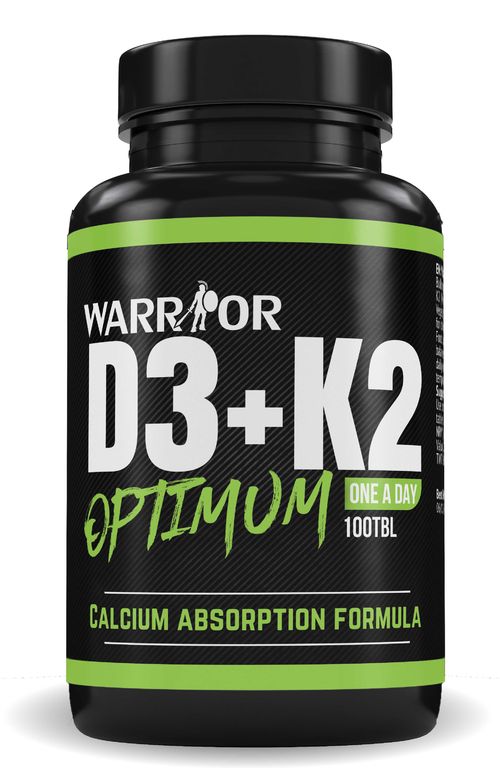 Vitamin K2+D3 Optimum od Warrior je kombinací dvou důležitých vitaminů rozpustných v tucích. Vitamin K2 (menachinon, MK-7, menaquinone) se získává extrakcí z japonského fermentovaného sojového sýra Natto. Vitamin K přispívá ke správné srážlivosti krve a k udržení zdravých kostí. Ti, kteří ho nepřijímají dostatek mají mnohem nižší minerální hustotu kostí.Vitamin D3 (cholekalciferol, cholecalciferol, kace, ,,sluneční vitamín") patří k biologicky nejdostupnější formě vitamínu D - živiny, která je rozhodující pro mnoho tělesných funkcí: přispívá k normální hladině vápníku v krvi, ke správnému vstřebávání/využití vápníku a fosforu, k udržení zdravých kostí, zubů, správného fungování svalů a imunitního systému.100μg vitaminu K2 (menachinon, MK-7)25μg (1000IU) vitaminu D3 (cholekalciferol)Proč právě kombinace vitaminu K2+D3?Silné kosti potřebují oba tyto vitaminy. Zatímco vitamin D je potřebný k tomu, aby se vápník správně vstřebal, úkolem vitaminu K2 je zajistit, aby vápník skutečně skončil v kostech.Bez této kombinace vitaminů se přebytek vápníku nemusí v těle využít správně a může naopak způsobit více škody než užitku.Náš TIP!Nezapomeňte na kombinaci s vápníkem, ideálně v biologicky dostupné formě citrátu, díky které ho bude tělo umět využít co nejlépe.Jelikož tyto vitaminy fungují synergicky (součinně), je nezbytné užívat jejich současně!Složení: objemová činidla: mikrokrystalická celulóza, hydrogenfosforečnan vápenatý, kukuřičný škrob, maltodextrin, sacharóza, kukuřičný olej; vitamin K2 (menachinon, MK-7), vitamin D3 (cholekalciferol), protispékavá látka: stearan hořečnatý rostlinného původu.Alergeny: sója.Upozornění: Přípravek není vhodný pro děti, osoby do 18 let, těhotné a kojící ženy. Doplněk stravy se nesmí používat jako náhrada pestré stravy. Uchovávejte mimo dosah malých dětí. Stanovená doporučená denní dávka se nesmí překročit.Skladování: Skladujte v suchu, mimo přímého slunečního záření při teplotách 6-25°C. Nevystavujte mrazu a vlhkosti.Dávkování: Užívejte 1 tabletu denně spolu s jídlem obsahujícím tuk a zapijte dostatečným množstvím vody.Doporučená denní dávka: 1 tabletaÚčinné látky v DDD (1 tableta): vitamin K2 100μg (133% RHP*), vitamin D3 25µg (1000IU (500% RHP*)).*RHP=referenční hodnota příjmu.Distributor: Green Medical, s.r.o., Rybná 716/24, 110 00 Praha 1, Česká republika