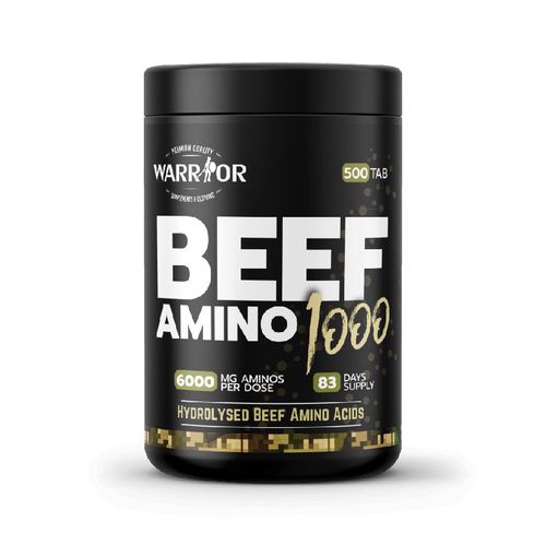 Pokud hledáš jeden z nejkvalitnějších a lehce stravitelných zdrojů aminokyselin na trhu, pak si na správném místě!Beef Amino 1000 od Warrior jsou zdrojem hovězích aminokyselin v pohodlné formě dobře polykatelné tablet.Jde o univerzální aminokyselinovou formulaci z hovězího masa, vhodnou pro všechny lidi, kteří se věnují silovým, vytrvalostním, kolektivním sportem, nebo i pro ty, kteří potřebují na stejné období zvýšit poptávku po vysoce kvalitních bílkovinách.Jelikož neobsahují tuk ani sacharidy, jsou ideální volbou iv období redukčních diet.1000mg hovězích aminokyselin v 1 tabletěVyužij všechny živiny hovězího masa bez obsahu tuku!Náš TIP!V naší nabídce najdete i jiné zdroje a formy aminokyselin. Jejich široké spektrum si můžete prohlédnout zde.Složení: hydrolyzovaný hovězí protein (zdroj hovězích aminokyselin), objemové činidlo: mikrokrystalická celulóza, protispékavá látka: stearan hořečnatý rostlinného původu. Upozornění: Přípravek není vhodný pro děti, osoby do 18 let, těhotné a kojící ženy. Doplněk stravy se nesmí používat jako náhrada pestré stravy. Uchovávejte mimo dosah malých dětí. Stanovená doporučená denní dávka se nesmí překročit. Skladování: Skladujte v suchu, mimo přímého slunečního záření při teplotách 6-25°C. Nevystavujte mrazu a vlhkosti. Použití a dávkování: 1-krát denně 6 tablet zapijte dostatečným množstvím vody. Užívejte po tréninku. Doporučená denní dávka: 6 tablet Účinné látky v DDD (6 tablet): hovězí aminokyseliny 6000mg (referenční hodnota příjmu není definována). Distributor: Green Medical, s.r.o., Rybná 716/24, 110 00 Praha 1, Česká republikaAminokyselinový profilve 100gL-alanin10,7gL-arginin4,5gKyselina asparagová4,8gKyselina glutamová7,7gL-glycin32,6gL-histidin0,6gL-hydroxyprolin10,0gL-isoleucin1,1gL-leucin2,3gL-metionin0,7gL-fenylalanin1,4gL-prolin12,1gL-serin3,4gL-threonin1,7gL-lysin2,6gL-hydroxylysin1,1gL-tyrosin0,4gL-valin2,3g