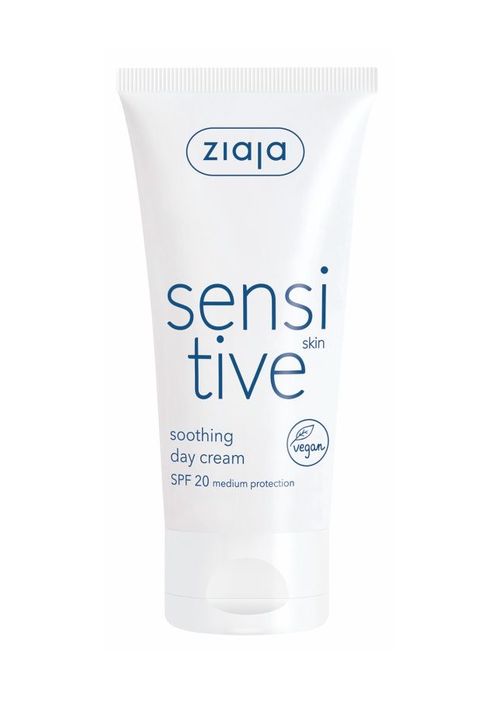 Zklidňující denní krém SPF20 Ziaja Sensitive intenzivně hydratuje, chrání pleť před podrážděním a je velmi šetrný i k citlivé pokožce. Předchází vzniku pigmentací.