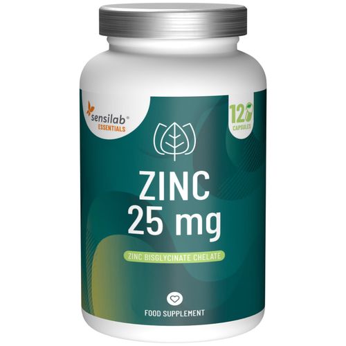 Produkt Essentials Zinek 25 mg. 120 kapslí. Vysoce dávkovaný doplněk stravy chelátového zinku. 100% veganský | Sensilab od Sensilab nyní získáte za nízkou cenu. Podívejte se na více informací.