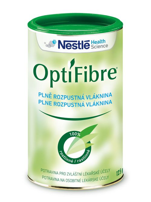 OptiFibre je rostlinná vláknina, která pomáhá přirozenou cestou podporovat střevní funkce a správné trávení. OptiFibre lze vmíchat do horkých i studených nápojů a kašovitých pokrmů, ve kterých se rychle rozpouští. Neovlivňuje chuť ani konzistenci jídla a nápojů. Je vhodná pro každého včetně těhotných žen, diabetiků a dětí od 3 let. Složení: částečně hydrolyzovaná guarová guma - 100% rostlinná rozpustná vláknina neobsahuje lepek, fruktózu, aromatické látky ani sladidla Dávkování: 5-25g OptiFibre denně nebo dle doporučení lékaře. Dávku postupně zvyšujte. OptiFibre je vhodné užívat po dobu 2-3 týdnů. Účinek se zpravidla dostaví po několika dnech. Upozornění: OptiFibre je potravina pro zvláštní lékařské účely. Vhodnost užití konzultujte se svým ošetřujícím lékařem nebo lékárníkem. Po otevření spotřebujte do 30 dní. Přípravek není určen jako jediný zdroj výživy.