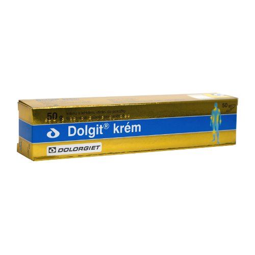 Dolgit krém je účinný v místní léčbě revmatických i nerevmatických bolestí pohybového systému. Je určen k lokální léčbě poranění pohybového ústrojí při sportu nebo při nehodách (zhmoždění, výron, vymknutí, vykloubení a namožení svalu). Na doporučení lékaře se přípravek používá k léčbě zánětlivého revmatického onemocnění kloubů, onemocnění páteře, otoků nebo zánětů měkkých tkání přiléhajících ke kloubům, ztuhlosti ramene, bolesti svalů a při bolestech spojených s artrózou. V postižené tkáni působí již za půl hodiny a je vhodná kombinace s tabletami se stejnou účinnou látkou. Dávkování: Dospělí a dospívající od 14 let aplikují 3 – 4 x denně po 3 - 4 hodinách na postižené místo 4 - 10 cm dlouhý proužek krému (pečlivě vetřít). U poranění při sportu nebo při nehodě většinou postačuje délka léčby 2 týdny. Dolgit nesmí být použit na otevřené rány, kožní onemocnění ani na sliznice. V těhotenství (III. trimestr neužívat vůbec) a během kojení lze užívat krátkodobě pouze na doporučení lékaře. Složení: Léčivou látkou je ibuprofenum 5 g v emulzi typu olej ve vodě ve 100 g krému. Pomocnými látkami jsou střední nasycené triacylglyceroly, glycerol-monostearát, makrogol-30-stearát, makrogol-100-stearát, propylenglykol, sodná sůl methylparabenu, čištěná voda, xanthanová klovatina, levandulová silice a silice květu citroníku pomerančového hořkého. LÉČIVÝ PŘÍPRAVEK, ČTĚTE POZORNĚ PŘÍBALOVÝ LETÁK.