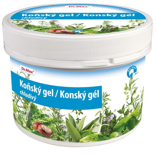 Dr.Max Koňský gel chladivý je masážní bylinný gel určený pro zevní použití. Má chladivý účinek. Použití: Gel naneste na kůži a krouživými pohyby jej lehce vmasírujte do pokožky. Možno použít také jako zábal se silnou vrstvou gelu. Složení: Aqua, Polysorbate 20, Alcohol denat., Menthol, Camphor, Aesculus Hippocastanum Extract, Backhousia Citriodora Oil, Melaleuca Alternifolia Leaf Oil, Santalum Spicata Wood Oil, Pinus Sylvestris Leaf Oil, Abies Alba Leaf Oil, Eucalyptus Globulus Leaf Oil, Mentha Piperita Oil, Lavandula Hybrida Oil, Thymus Vulgaris Oil, Eugenia Caryophyllus Oil, Cymbopogon Citratus Oil, Carbomer, Phenoxyethanol, Ethylhexylglycerin, Triethanolamine, CI 42051, CI 15985, Linalool, Limonene, Citral. Upozornění: Určeno pro zevní použití. Zabraňte vniknutí do očí. Vzácně se může vyskytovat alergická reakce na některou složku. Silné zarudnutí pokožky po aplikaci je přirozený jev.