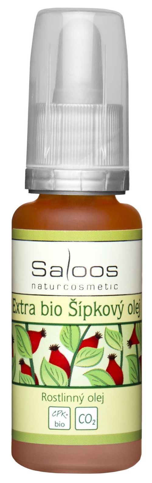 Vysoký obsah karotenoidů, které jsou v oleji obsaženy mu dodávají typickou sytě oranžovou barvu a díky šetrné extrakci si zachovává příjemné šípkové aroma. Pleť lehce tónuje, sjednocuje přirozený odstín a tak zvyšuje její atraktivitu. Tuto vlastnost oceníte zvláště máte-li sklon k tvorbě pigmentových skvrn. Šípkový olej hydratuje a je bohatý na antioxidanty, steroly a vitaminy, které bojují s volnými radikály a zpomalují proces stárnutí pokožky. Je mimořádně vhodný zejména pro pleť zralou, náročnou, citlivou až problematickou. Je vhodný při péči o zhojené jizvy například po akné, popáleninách či chirurgickém zákroku. Extra bio šípkový olej je získáván moderní metodou CO2 extrakcí. Nejedná se o chemické zpracování, ale o velmi šetrný způsob výroby bio rostlinného oleje pomocí oxidu uhličitého, který je získáván při zkapalnění vzduchu. Vlastnosti Extra bio šípkového oleje zpracovaného CO2 extrakcí jsou srovnatelné s oleji lisovanými za studena. Hlavní vlastnosti: Sjednocuje tón pleti Hydratuje a regeneruje Pleť je svěží a vitální Složení: 100% bio šípkový olej. Použití: Malé množství oleje vmasírujte do navlhčené pokožky. Snadněji se tak nanáší a vstřebává. Certifikovaný produkt: Díky vysoké kvalitě získala značka Saloos označení „Certifikovaná přírodní kosmetika“. Pečlivě vybrané rostlinné oleje, bio oleje lisované za studena a vzácné esenciální oleje obsahují velké množství bioaktivních látek, vitamínů a minerálů v přirozené podobě. Přípravky Saloos neobsahují konzervanty, barviva ani parfémy a jsou vhodné i pro citlivou pokožku, která špatně snáší běžné přípravky.