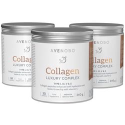 AVENOBO Collagen Luxury Complex 1+2 ZDARMA - 4v1 podpora proti stárnutí - kvalitní hydrolyzovaný kolagen | Ostružinová chuť | 3x 240 g | Sensilab